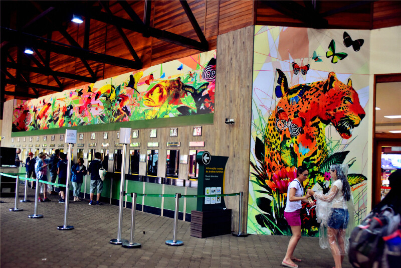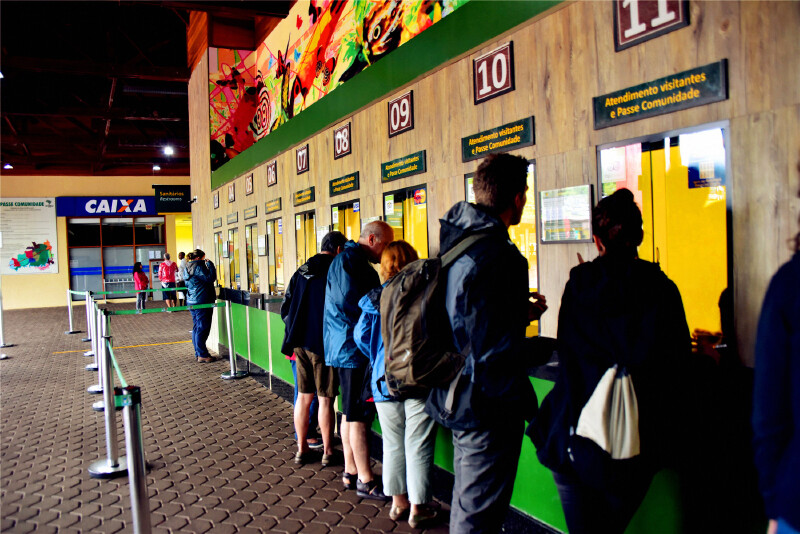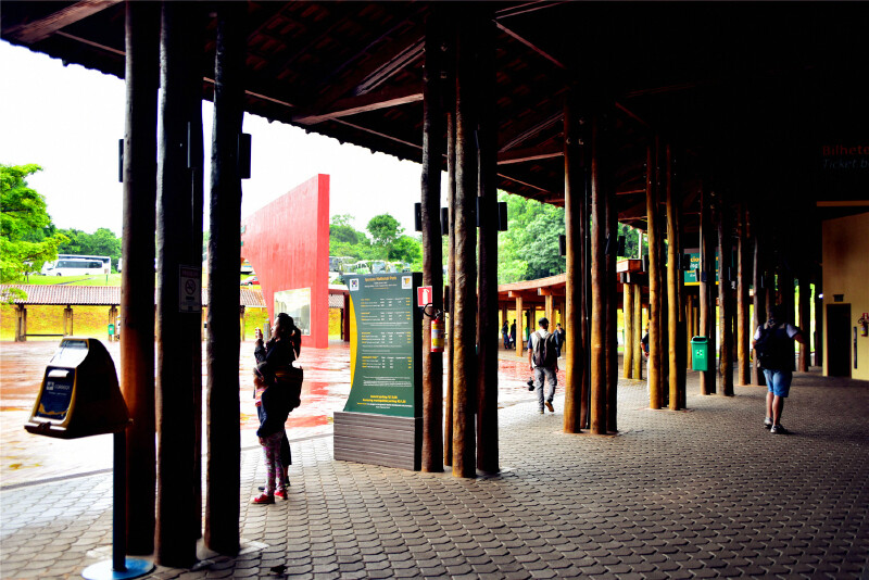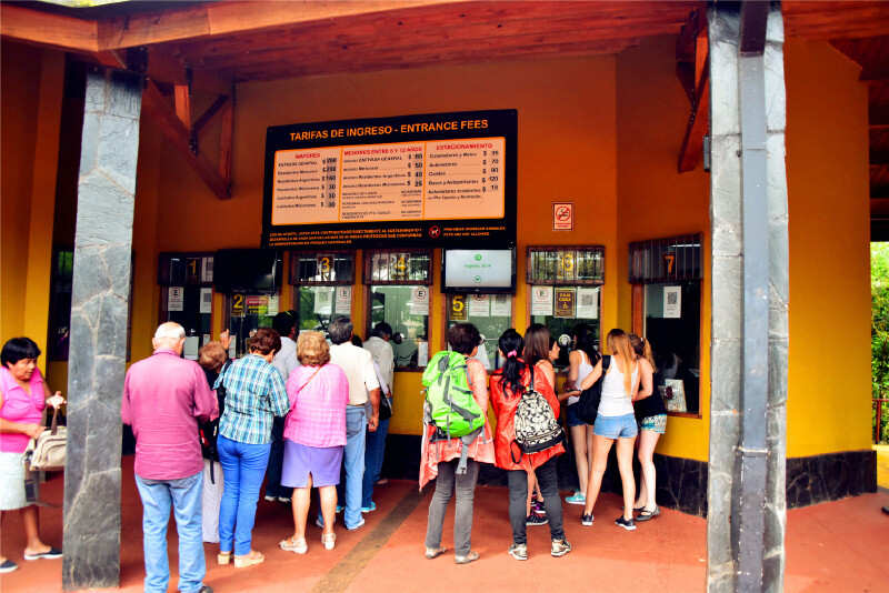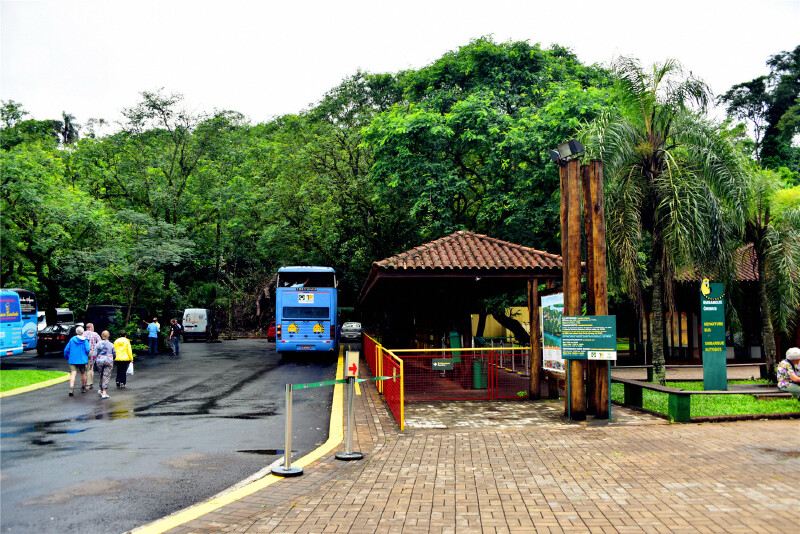 公园售票处。以前,伊瓜苏瀑布是供游人免费参观的,几年前,瀑布旅游区交由一家私人企业经营,这家企业投入了大量资金,修建了游览栈道,铺设了电气铁路,旅游设施焕然一新。理所当然,公园也就要收费了。