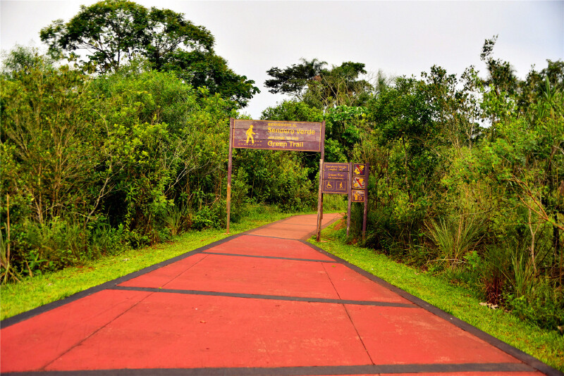进入公园以后,先是乘坐公园里的公共旅游观光车到达指定区域下车,然后开始步行。不像在阿根廷有好几条线路可供选择,这里就只有一条路线,沿着伊瓜苏河巴西一侧向前。