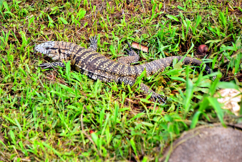 草丛中藏着一只巨型蜥蜴,刚看到时还吓了我们一跳。