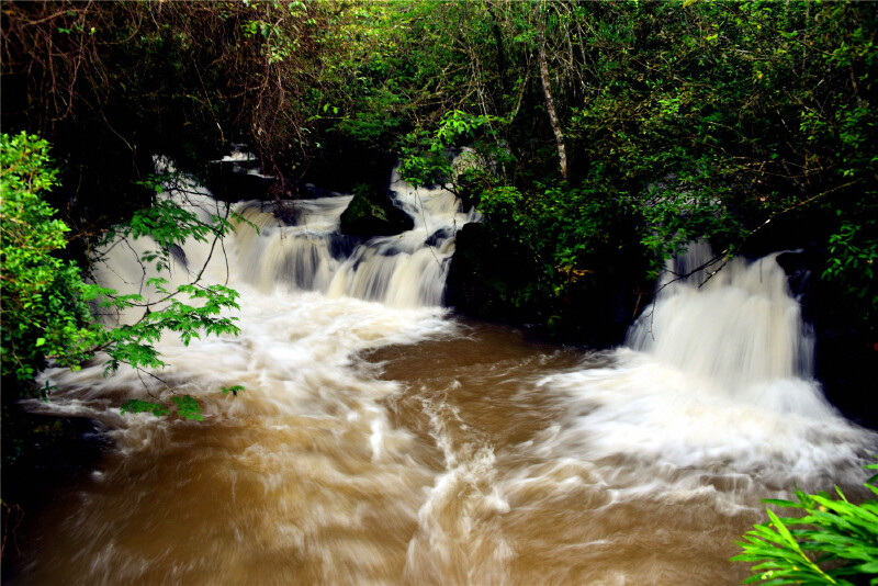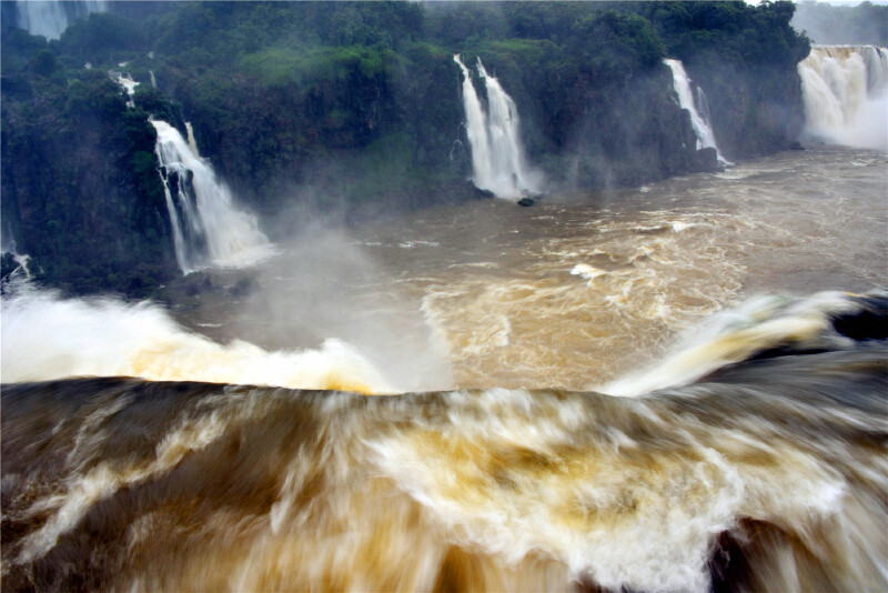 整体印象:伊瓜苏瀑布,位于南美洲巴西与阿根廷界河伊瓜苏河下游,分属巴西和阿根廷所共有,其中大都在阿根廷一侧。伊瓜苏瀑布是世界上最宽的瀑布,在总宽约4000米的河面上,河水被岩石和树木分隔成275股大大小小的瀑布,跌落成瀑布群,瀑布形状如马蹄形,平均落差75米。水流在飞落峡谷底部之前,先冲到高崖半腰的石台上,轰然作响,几十公里外仍可听见。