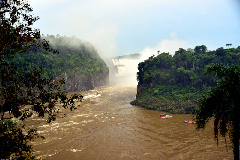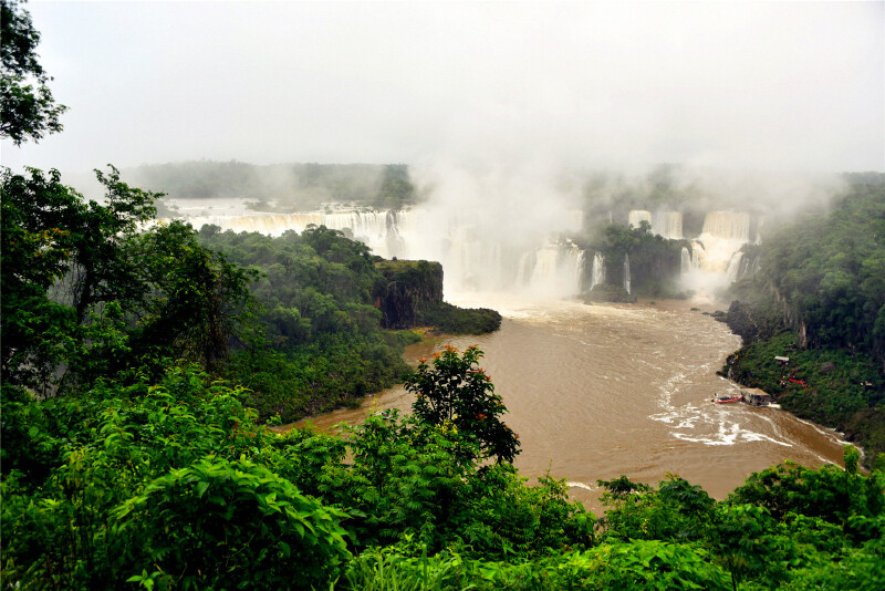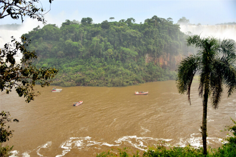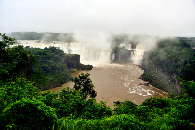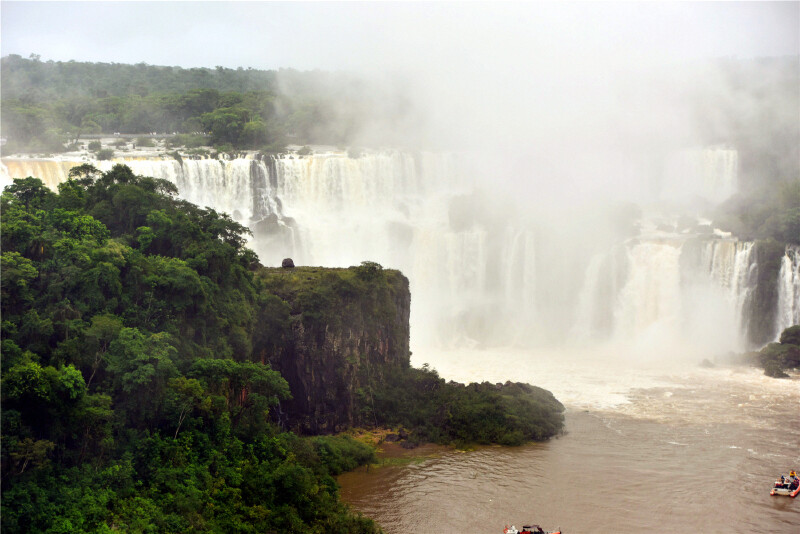 前面的这个岛屿就是圣马丁岛,站在这个岛上是环顾伊瓜苏瀑布的最佳位置。不过岛上茂密的森林也遮挡了视线,所以到这个岛上去的游人并不是很多。