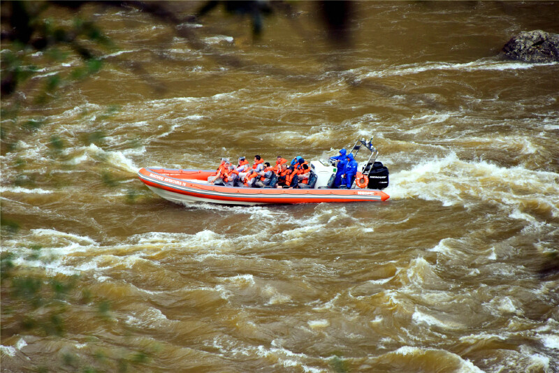 这是勇敢者的游戏,冲锋舟全力向瀑布冲过去,但根本到不了跟前就会被巨浪打回来,这时一船的游客全部都成了落汤鸡。这项惊险刺激的活动我们已经在美国的尼亚加拉大瀑布参加过,所以今天就没再去了,再说时间也不允许呀。
