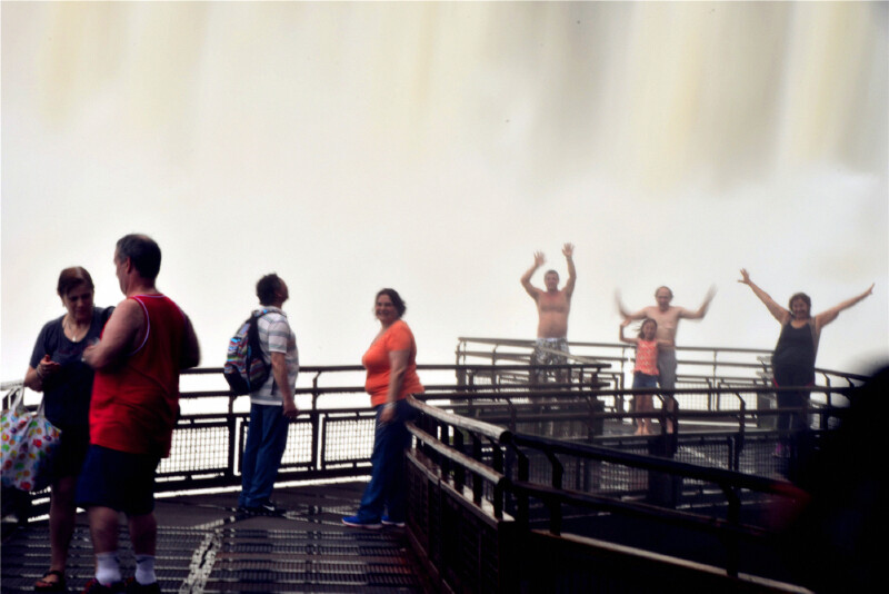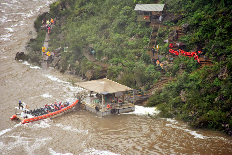 这栋栈桥很有特点,因为架设在“魔鬼咽喉”的下端,在巨大的瀑布冲击下,在栈桥上会感受到十级风暴的冲刷,如果想要遮挡狂风雨雾,打伞会是最愚蠢的做法,因为如此大的风雨会瞬间将雨伞吹烂或刮跑。最佳的选择只能是雨衣或者任其打湿。
