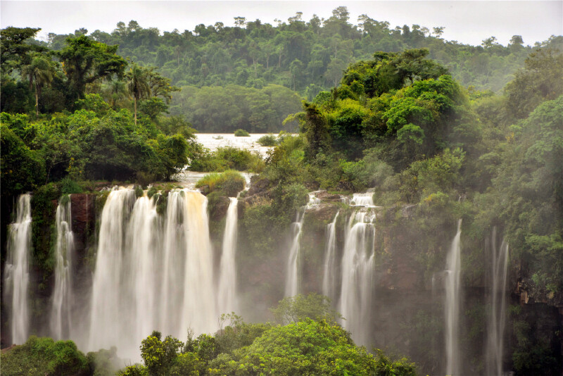 伊瓜苏瀑布是地球上最宽大最壮观的瀑布,其宽度位居世界三大瀑布(其他两个分别是美加边境的尼亚加拉大瀑布和非洲赞比西河上的维多利亚大瀑布)之首,宽于维多利亚瀑布,是尼亚加拉瀑布宽度的四倍。瀑布形成于1.5亿年前,那时,因火山喷发而形成了火山岩和松软的岩层,松软的岩层被伊瓜苏河水的侵蚀造成了巨大的落差,形成了瀑布。瀑布好像从天而降,气势磅礴,形成了一百多米高的水汽,无论艳阳高照还是暴雨如注,瀑布都掩映在云遮雾罩之中。“伊瓜苏”在印地安语中就是“大水”的意思。联合国于1986年把它列入了世界自然遗产名录。