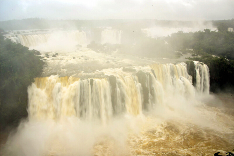 11月是南美的春夏之际,是丰水期。所以这时的伊瓜苏河水是混黄色的,瀑布也就成了黄色瀑布。