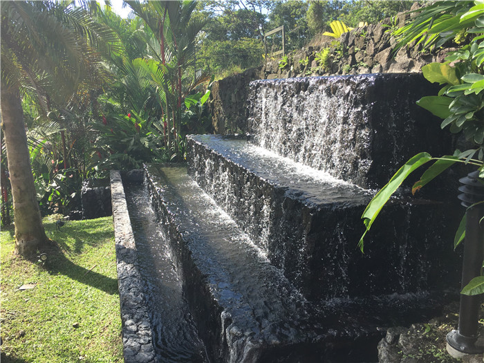 瀑布与瀑布之间形成大大小小的水池,人们可以在热带植物的环绕下,静静地沉下身体放松心情。