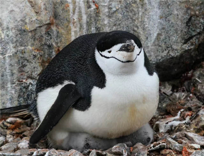 帽带企鹅又称南极企鹅,颚上带有一条黑线。多出现在南极半岛为中心的斯科舍海,是海洋性企鹅。